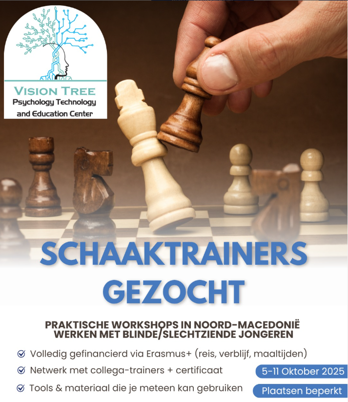 We are looking for motivated trainers for an international training week on inclusive chess with blind and visually impaired youth in Bitola, North Macedonia: October 5–11, 2025.